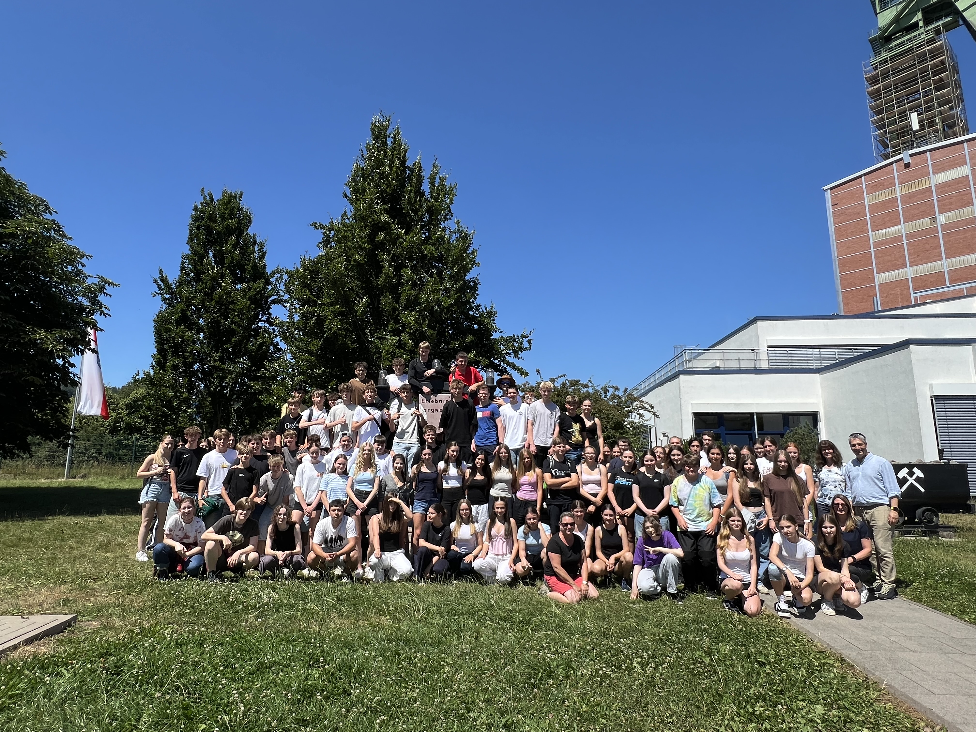 Das Erlebnisbergwerk Merkers tief unter der Rhön bot den 95 Schülerinnen und Schülern der aktuellen Jahrgangsstufe 9 einen eindrucksvollen Einblick in die Welt des Bergbaus. Über kurvige Strecken in 800 m Tiefe wurden mehrere Stationen auf einer Länge von 20 km in rasanter Fahrt besucht. Innerhalb von drei Stunden bot sich die Gelegenheit, alles über Salzlagerstätten sowie ihre Entstehung, die Geschichte des Bergbaus und die Rolle des Bergwerks am Ende des 2. Weltkriegs zu erfahren. Besonders beeindruckte der historische Goldraum, wo der legendäre Reichbank- Schatz gefunden wurde sowie die weltweit einmaligen Kristallgrotte, in der das Funkeln der riesigen Salzkristalle bestaunt werden konnte. Eine Lasershow im ehemaligen Großbunker des Bergwerkes, eine riesige Halle, die heute als Eventlocation genutzt wird, hinterließ abschließend eine Gänsehaut.
