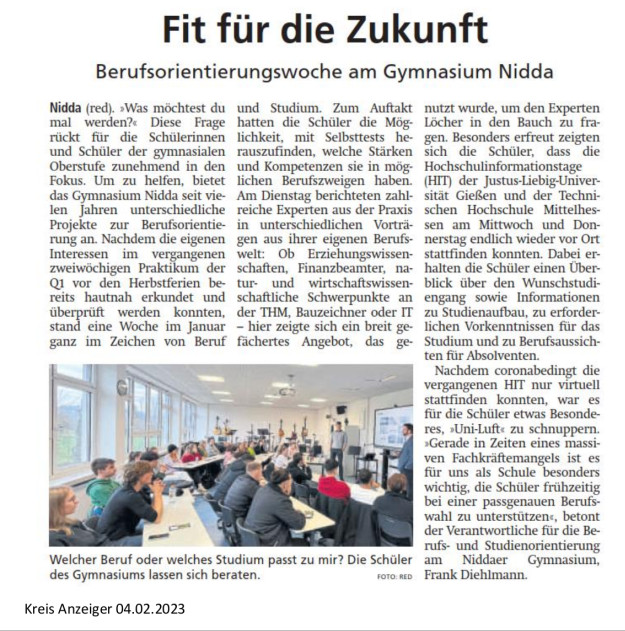 Die Klassen 5D, 6D, 7D, 9C und einige Schüler aus der 7B und 8A haben mit ihren Mathematiklehrern Matthias Feick und Tristan Amler am Wettbewerb „Mathematik im Advent“ teilgenommen. Dieser Wettbewerb ist ein Onlinewettbewerb und bietet den Schülerinnen und Schülern an jedem Tag in der Adventszeit eine spannende Mathematikaufgabe. Hierbei konnte die Schülerschaft eine Vielzahl an Gold-, Silber- und Bronzemedaillen erringen. Zu dieser großartigen Leistung gratuliert die Schulgemeinde des Gymnasiums Nidda den Siegerinnen und Siegern.