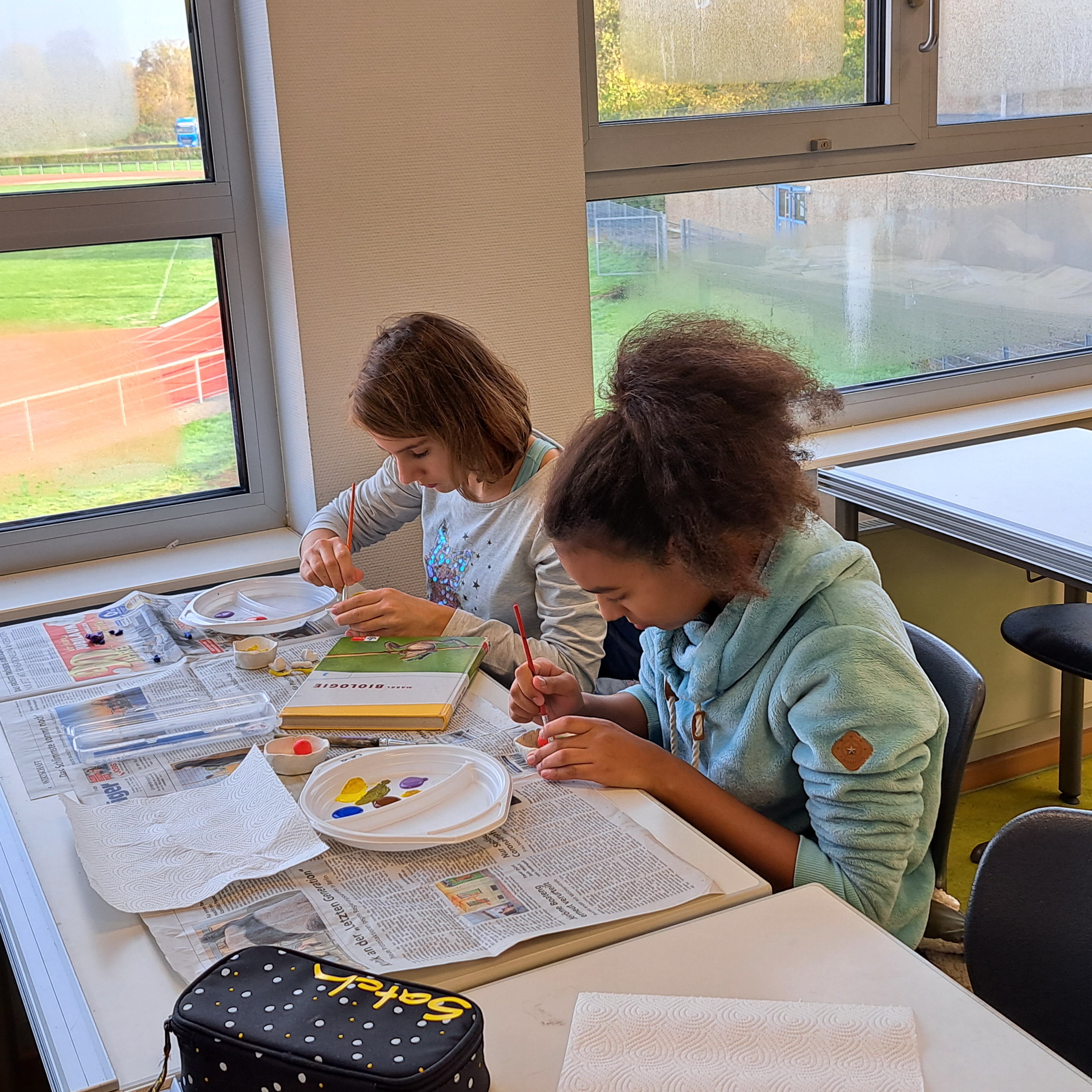 Zuletzt signierte Chantal-Fleur Sandjon die Romane – und staunte über die vielen Post its der fleißigen Zehntklässlerinnen (so viele habe sie in noch keinem ihrer Bücher gesehen)... Jedes der Exemplare (dem Förderverein sei hier nochmals ausdrücklich für die Unterstützung gedankt) erhielt eine eigene Widmung. Eine der schönsten vielleicht: „Lass es leuchten!“