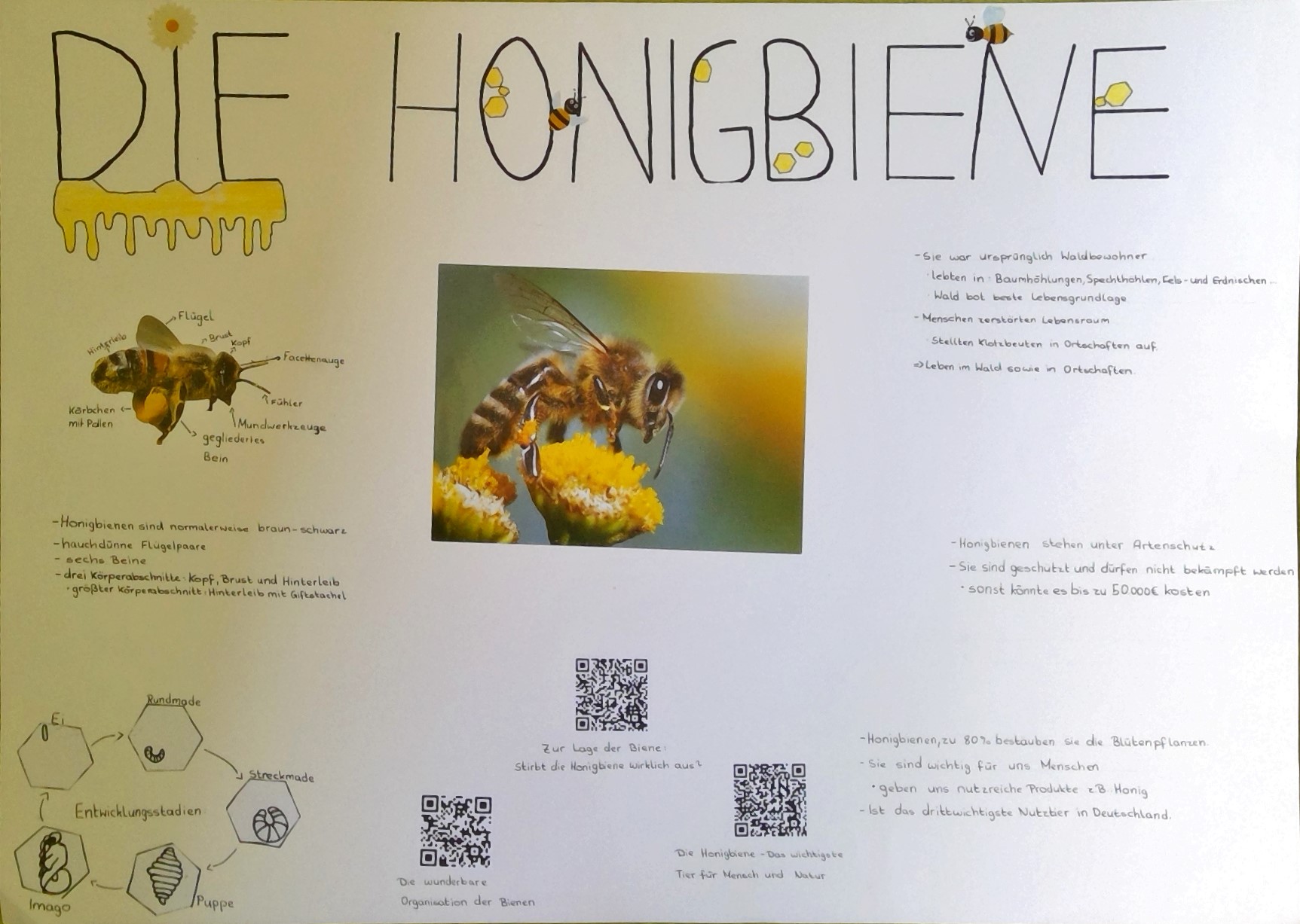 Die gezeigten Bilder/Videos stammen mit freundlicher Genehmigung von der Klasse 7c und 7d, sowie von der Projektgruppe „Die Honigbiene als Nutztier“, Text von Kerstin Schäfer.