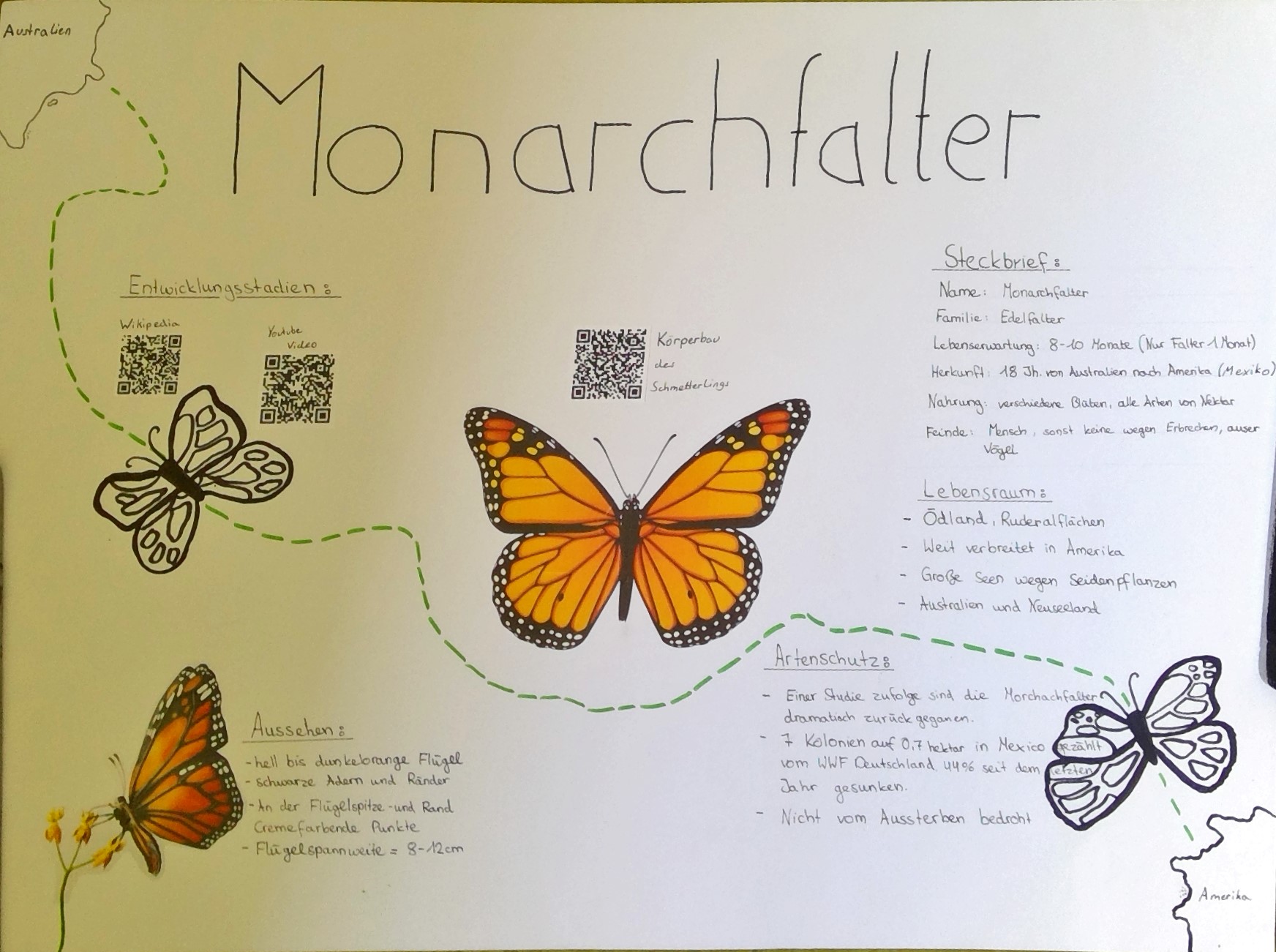 Um die Entwicklung eines Insekts nachvollziehen zu können, zogen Ende Mai Distelfalterraupen ins Gymnasium Nidda ein, die bis zur vollständigen Verwandlung zum Schmetterling von den Schülerinnen und Schülern täglich betreut und gepflegt wurden. Eine Kamera filmte dabei die verschiedenen Entwicklungsstadien, sodass die Schülerinnen und Schüler die Entwicklung ihrer Schmetterlinge verfolgen konnten. Zum Erarbeiten der Unterrichtsinhalte wurden neben den klassischen naturwissenschaftlichen Arbeitsmethoden auch neue Medien wie Handys und Tablets zur selbstständigen Erarbeitung der Lerninhalte genutzt.