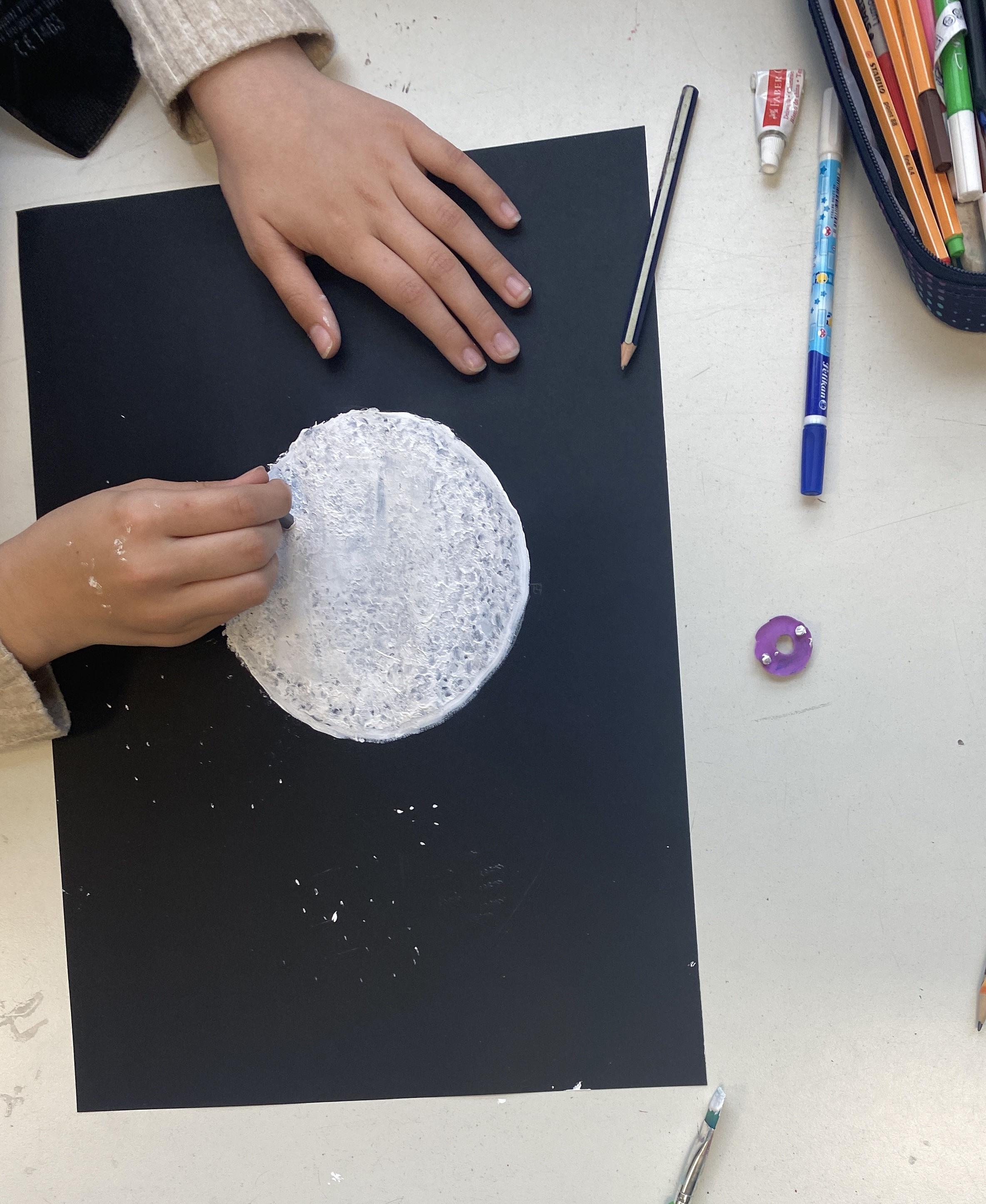 Im Rahmen der Ausstellung Life Time von Udo Rondinone in der Schirn in Frankfurt, hat der Künstler dazu aufgerufen den Mond zu zeichnen und Teil seiner Ausstellung zu werden. Einige SchülerInnen aus den Klassen 5b, 5c und 5d sowie SchülerInnen aus der 6a, 6b und der 6d haben bei der Mitmach Aktion „Schirn Stars, male deinen Mond“ teilgenommen und ihr Bild an den Künstler ins Museum geschickt.