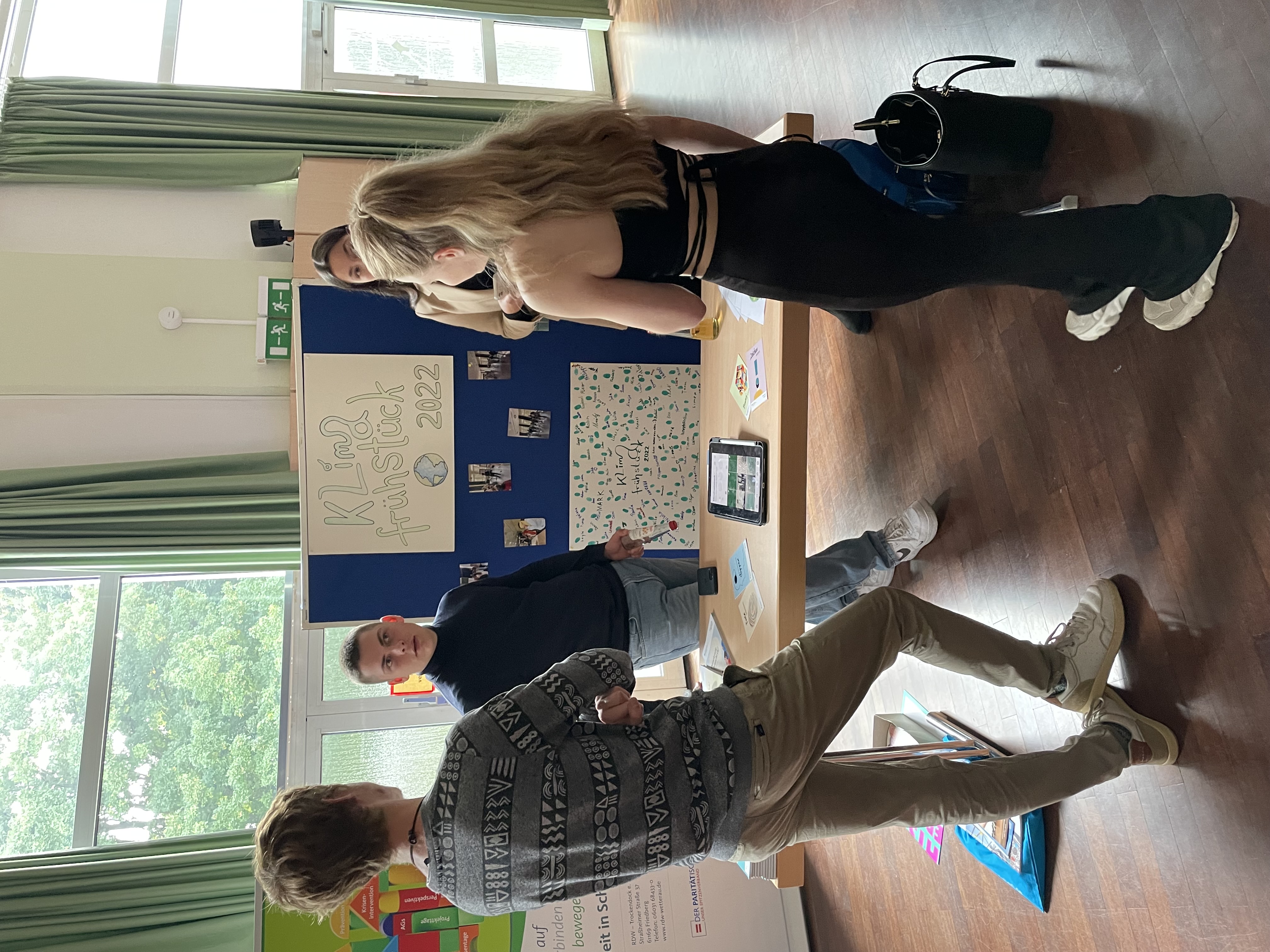 Am 29.09.2022 fand im Bürgerhaus Nidda eine Demokratiekonferenz im Rahmen des Bundesprogramms „Demokratie Leben“ und passend zum Motto „Mobbing? Nicht mit uns“ statt. Das abwechslungsreiche Bühnenprogramm der Veranstaltung umfasste verschiedene musikalische und künstlerische Beiträge, Reden und Vorträge engagierter beziehungsweise ehrenamtlicher Helfer, ein Interview mit der ehemaligen Fußball-Weltmeisterin Nia Künzer und die Verleihung des Titels „Schule ohne Rassismus – Schule mit Courage“ an das Gymnasium Nidda. Ein weiterer Teil des Abends waren verschiedene Thementische und eine Kunstausstellung in Form von Plakaten gegen Rassismus, die im Unterricht des Q3 Kunst Leistungskurses entstanden sind.