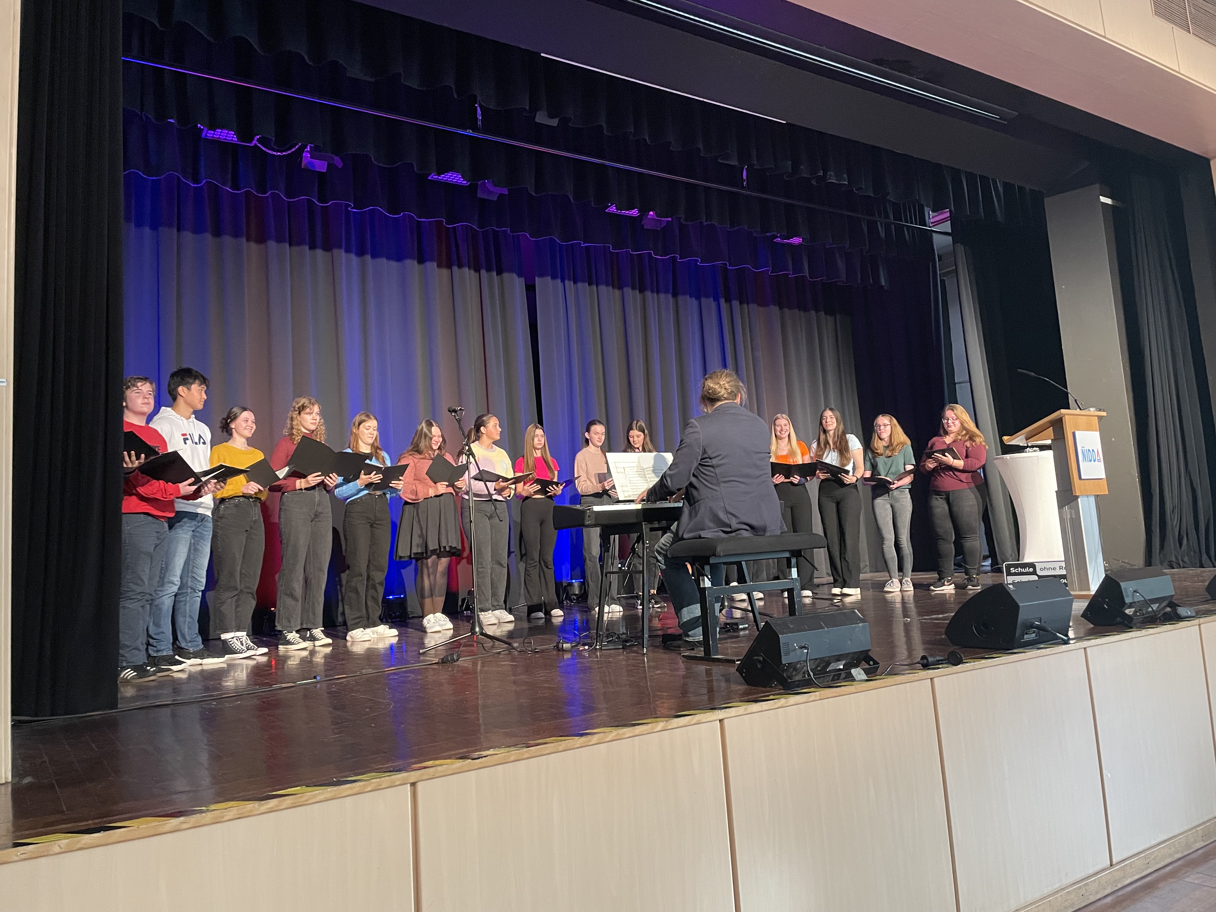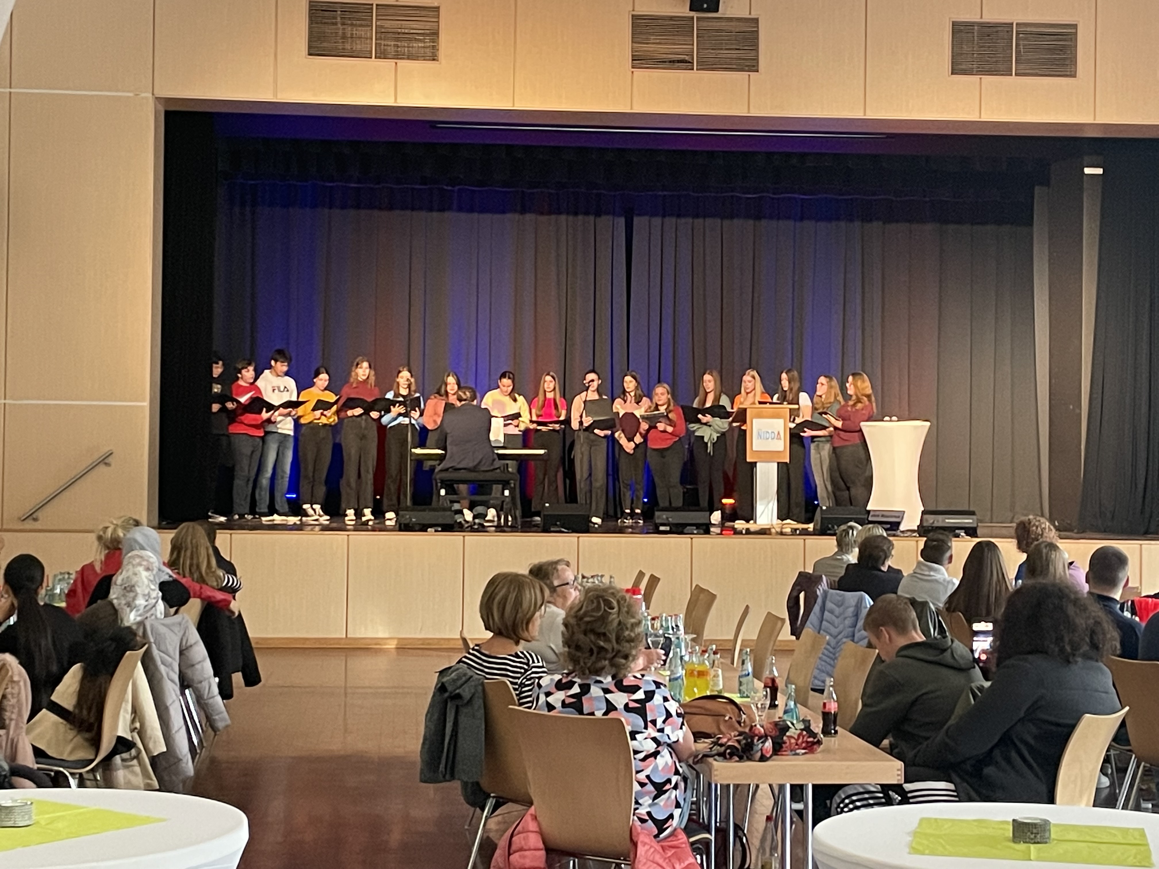 Nach einer Begrüßung des Bürgermeisters, in der er klarstellte, dass er stets für Gerechtigkeit und Gleichbehandlung kämpfen möchte, trat der Chor des Gymnasium-Nidda mit seiner ersten Nummer „Viva La Vida“ der Band Coldplay auf.