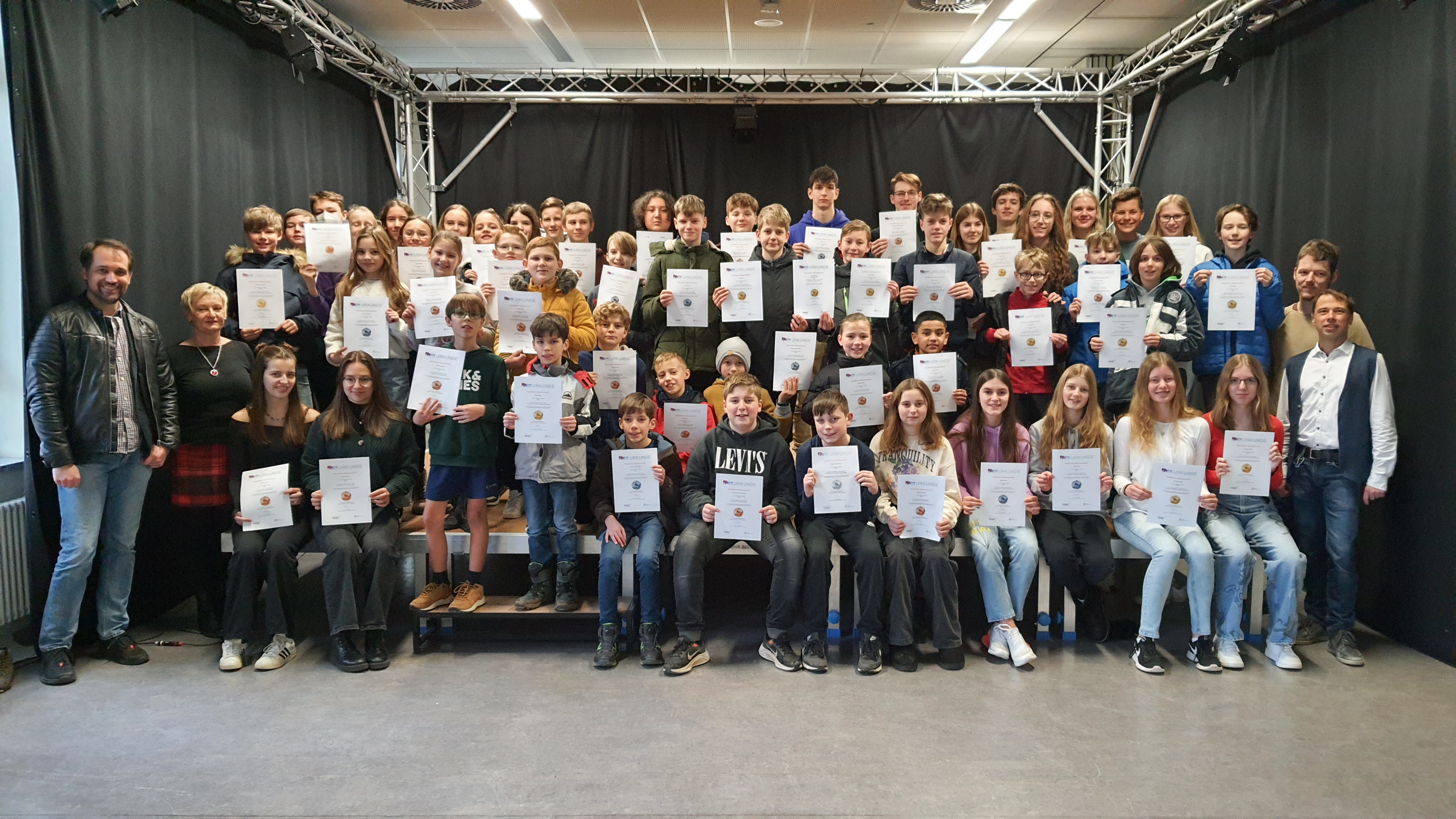 Die Klassen 5D, 6D, 7D, 9C und einige Schüler aus der 7B und 8A haben mit ihren Mathematiklehrern Matthias Feick und Tristan Amler am Wettbewerb „Mathematik im Advent“ teilgenommen. Dieser Wettbewerb ist ein Onlinewettbewerb und bietet den Schülerinnen und Schülern an jedem Tag in der Adventszeit eine spannende Mathematikaufgabe. Hierbei konnte die Schülerschaft eine Vielzahl an Gold-, Silber- und Bronzemedaillen erringen. Zu dieser großartigen Leistung gratuliert die Schulgemeinde des Gymnasiums Nidda den Siegerinnen und Siegern.