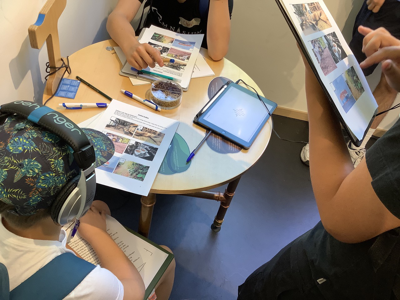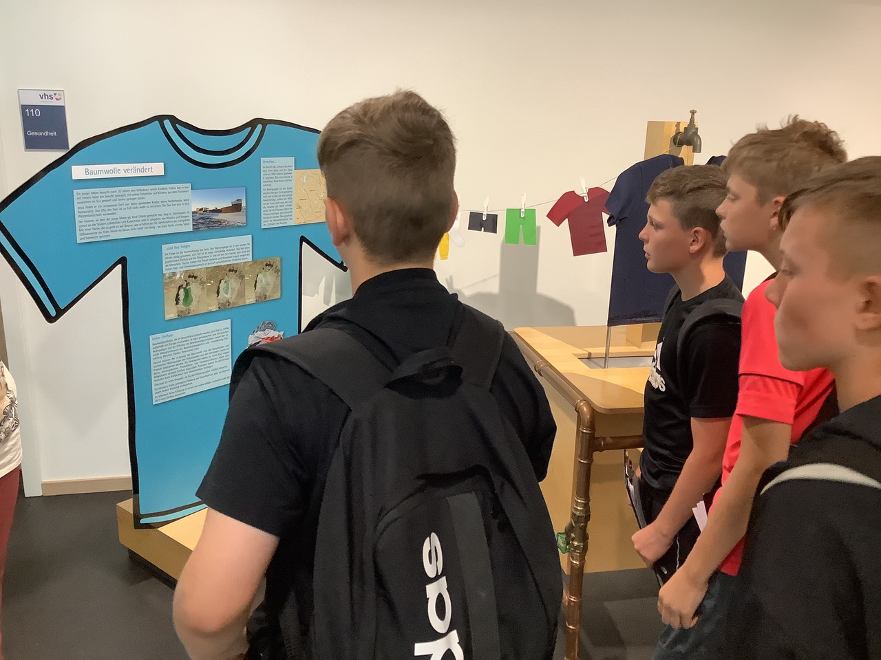 11.000 Liter Wasser für eine Jeans, 2.400 Liter Wasser für einen Rindfleisch-Patty – wie unvorstellbar viel Wasser für die Herstellung von Alltagsgegenständen benötigt wird, erkundeten die Nawi-Klassen 5c und 5d im Rahmen eines Projekttages bei der Ausstellung „Ich sehe Was(ser), was du nicht siehst – Virtuelles Wasser begreifen“ an der Volkshochschule in Lich. Dort waren verschiedene Stationen zum virtuellen Wasser (das beschreibt das für ein Produkt aufgebrachte Wasser, das beim Kauf nicht sichtbar ist) aufgebaut, die die Schülerinnen und Schüler unter Anleitung von Studierenden der Justus-Liebig-Universität erkunden konnten. Das Projekt fand im Rahmen eines Biologiedidaktikmoduls der JLU statt, was durch die Kooperation mit Frau Prof. Dr. Kremer ermöglicht wurde.