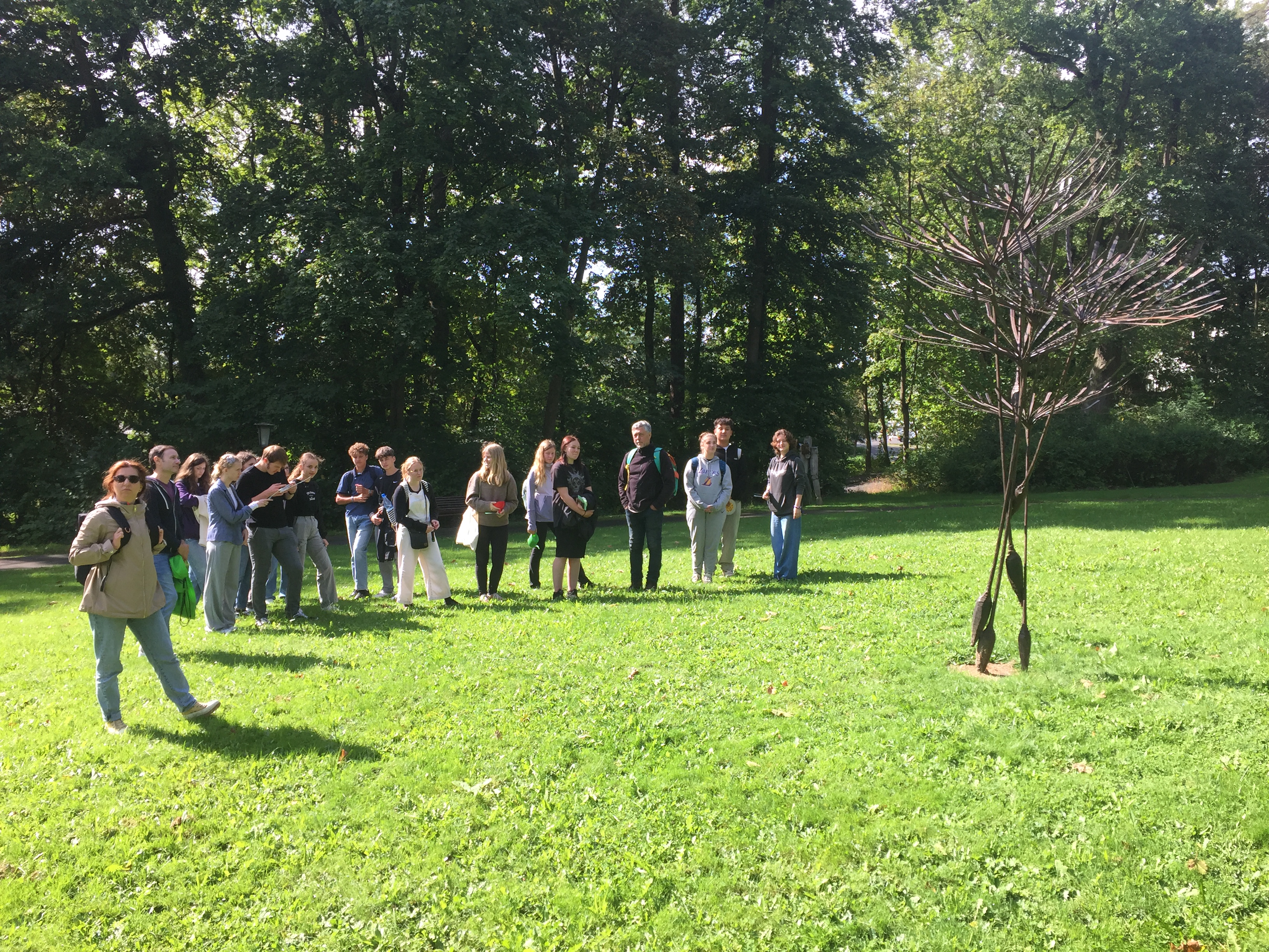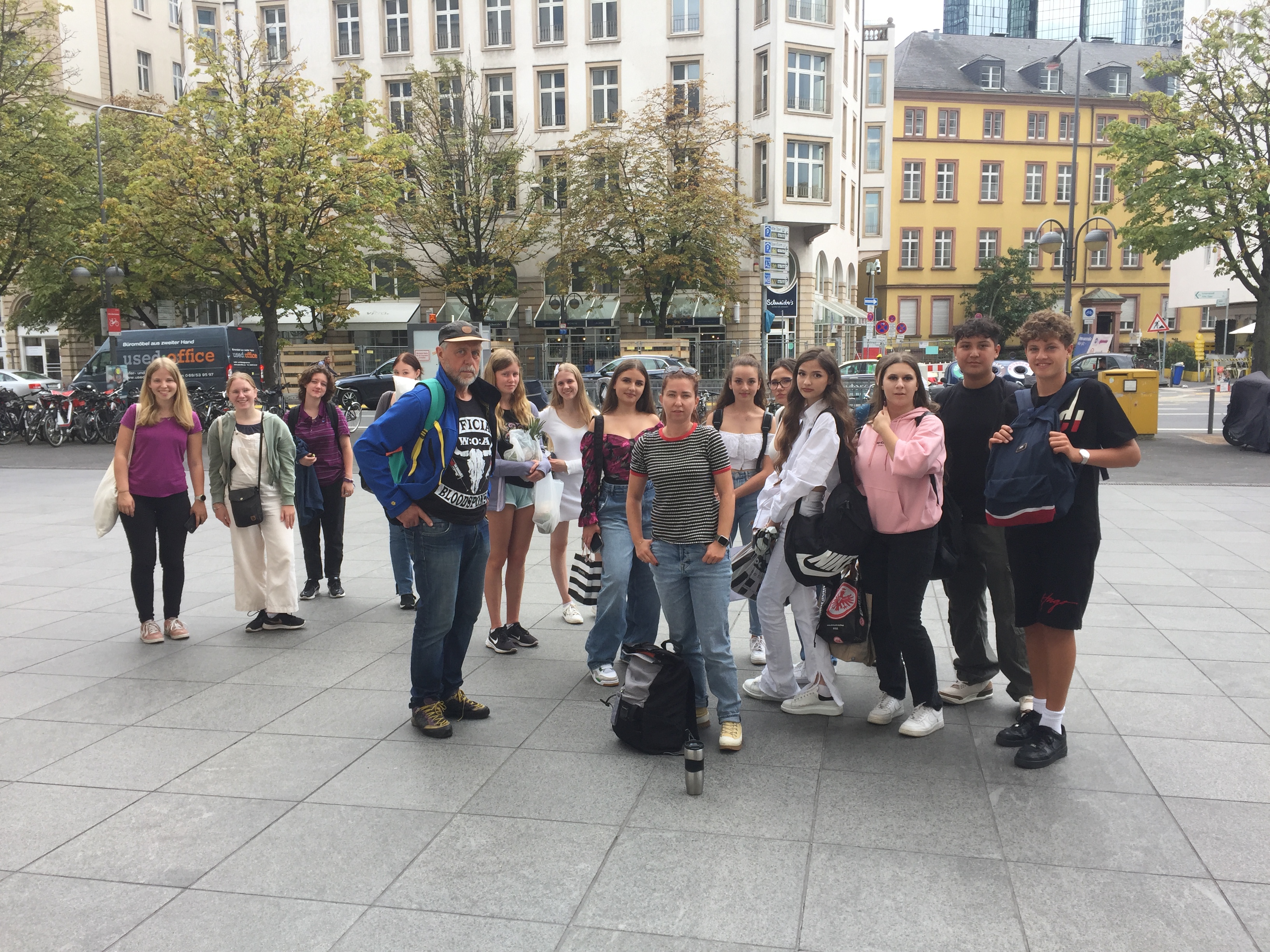 Für die rumänisch-deutsche Schülergruppe standen vielfältige Aktivitäten auf dem Programm, organisiert von den betreuenden Lehrern Reinhold Bonnert und Matthias Weidmann. So besichtigten wir das Ernst-Leitz-Museum in Wetzlar und fuhren nach Frankfurt, wo wir unter anderem den Ausblick aus den oberen Stockwerken eines Schweizer Bankhochhauses genießen konnten. Auch stand ein Spaziergang nach Bad Salzhausen mit dem Besuch des dortigen Skulpturenparks auf dem Programm. Die Schülerinnen machten hier mit dem sogenannten „Salzhäuser Sack“ Bekanntschaft, einem Ansatz der kreativen Kunstvermittlung.