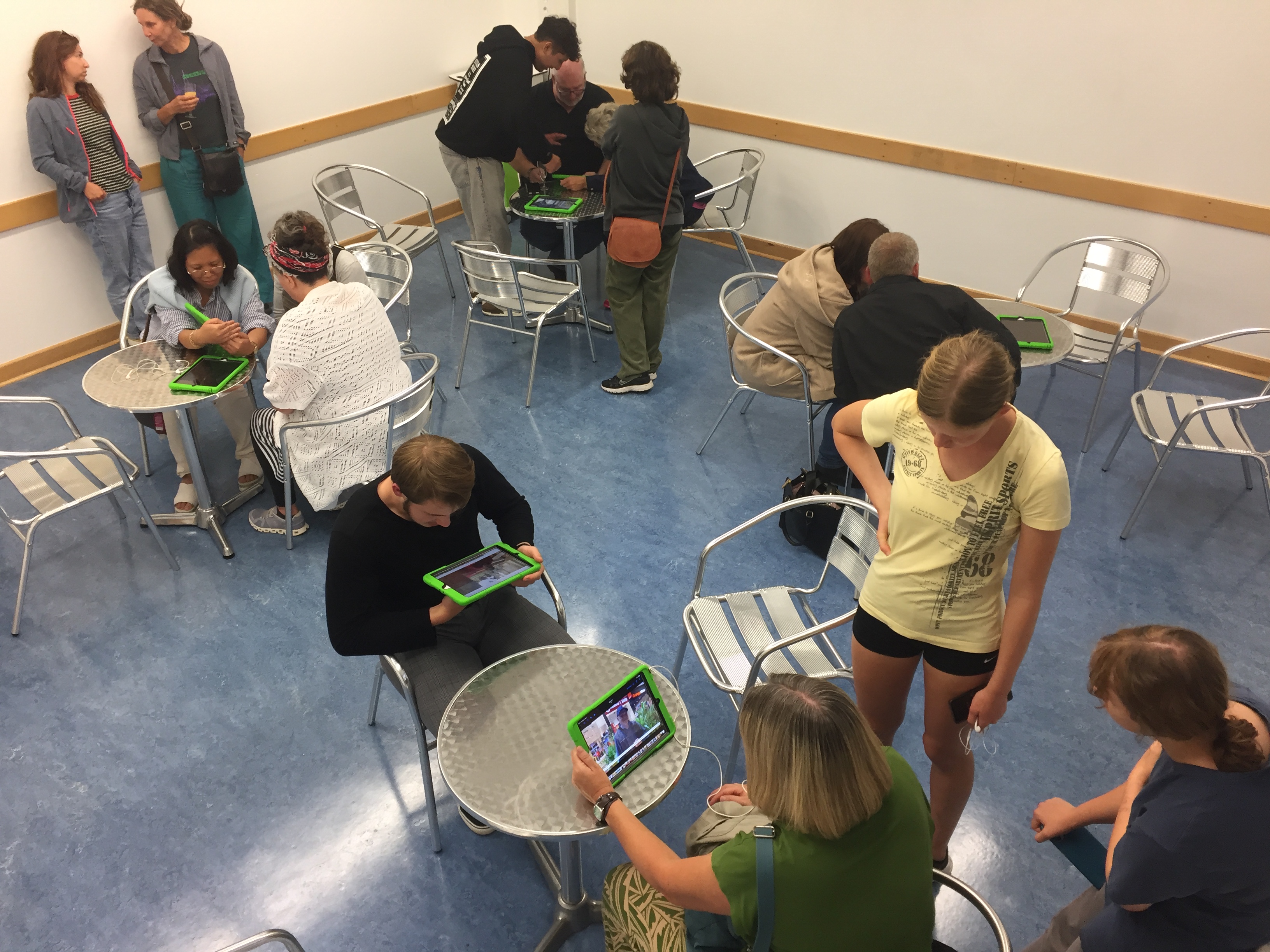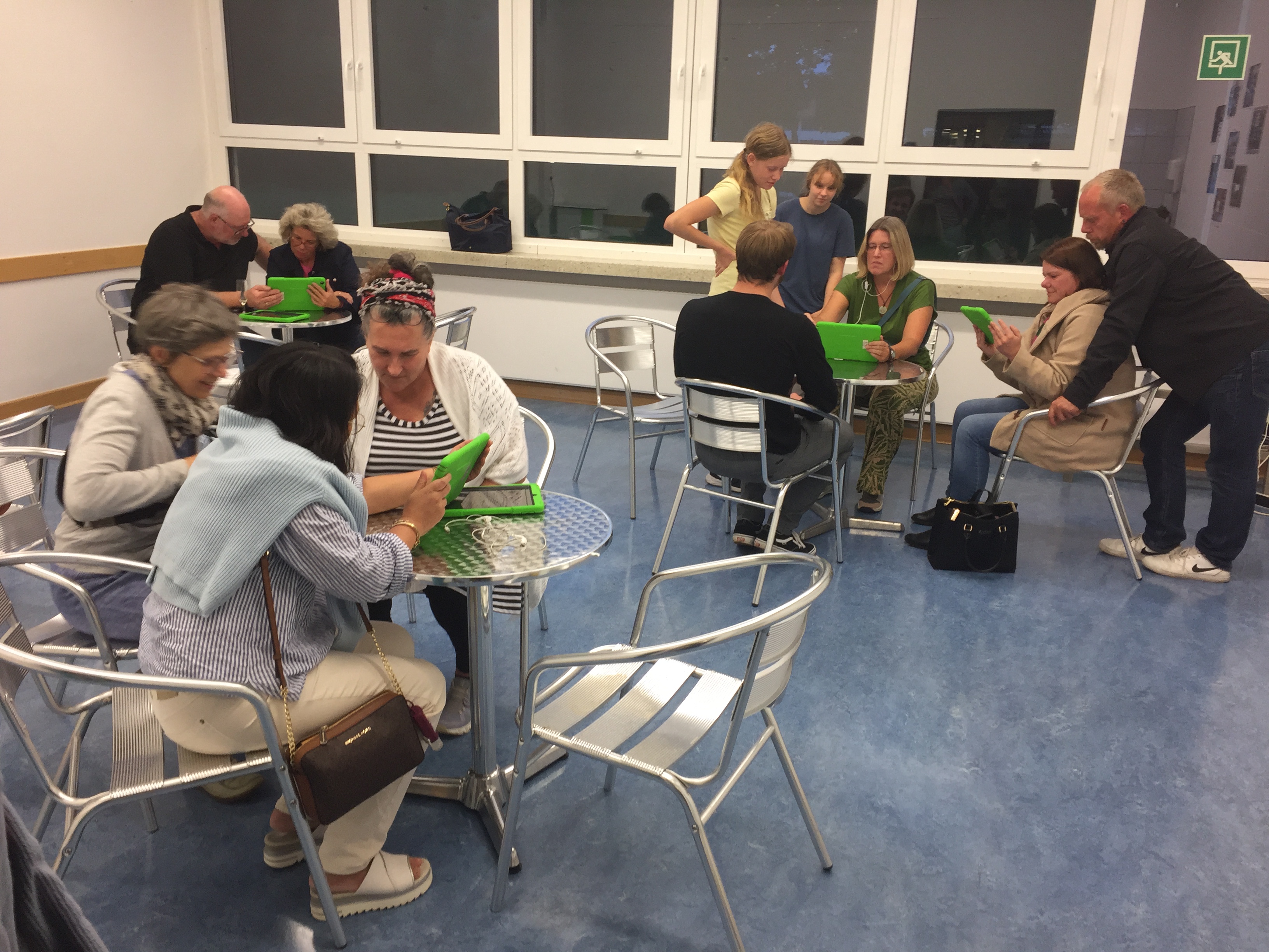 Den Abschluss bildete eine Vernissageveranstaltung am Freitag, zu der die Eltern der gastgebenden Schülerinnen und Schüler und weitere Gäste eingeladen waren. Präsentiert wurden die Ergebnisse einer Projektarbeit, der die Frage „Welche Zukunft wollen wir?“ zugrunde lag. Diese Frage wurde in kurzen Interviews verschiedenen Personen in Satu Mare und Nidda gestellt, die ihre persönlichen oder gesellschaftlichen Wünsche für die Zukunft äußerten. Die kurzen Videoclips wurden in Nidda am Gymnasium in Kooperation mit der Künstlerin Damaris Wurster, die derzeit das Fliegende Künstlerzimmer am Gymnasium Nidda bespielt, in einem nachmittäglichen Workshop bearbeitet und geschnitten.