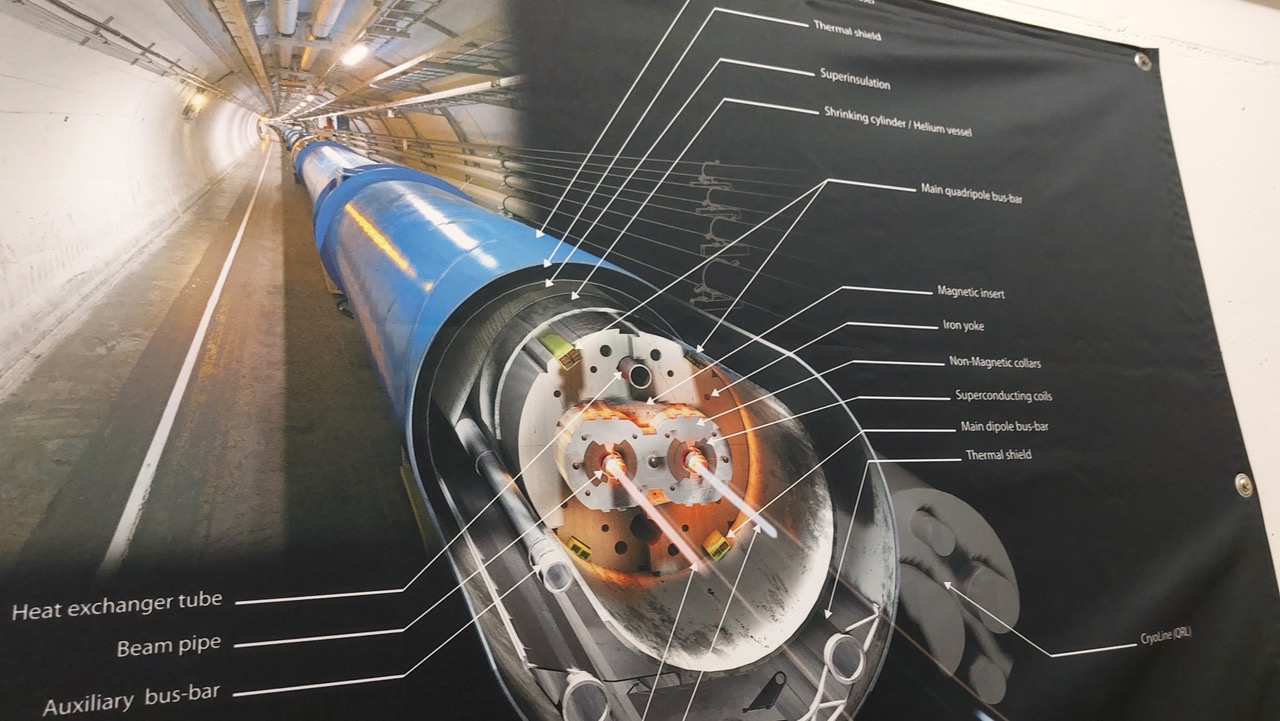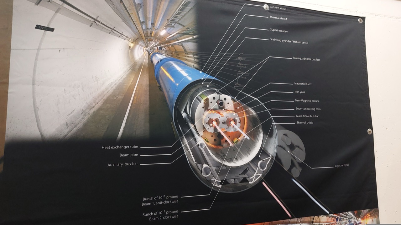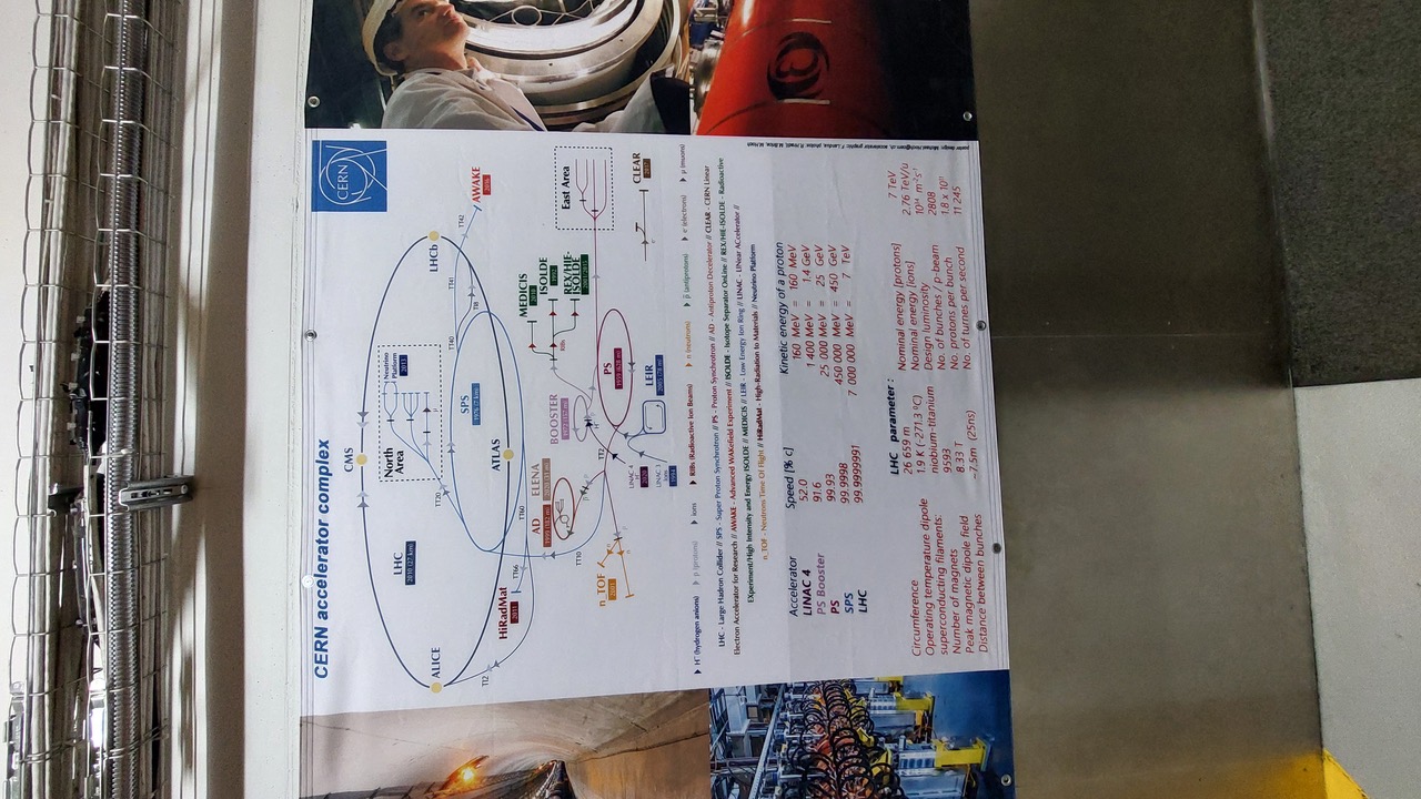 Treffpunkt war um Mitternacht in Heidelberg, da dort die Busfahrt startete. Um 6 Uhr morgens gab es eine lange Frühstückspause in der Schweiz. Während der Fahrt gab es eine kurze Einführung in die Materie, um alle auf den gleichen Wissensstand zu bringen. Im CERN gab es ab 9 Uhr eine Führung durch die Anlage, die unterirdisch unter Teilen der Schweiz und Frankreichs liegt. Die Führung dauert etwa 2 Stunden und einige Aufnahmen sind oben zu sehen.