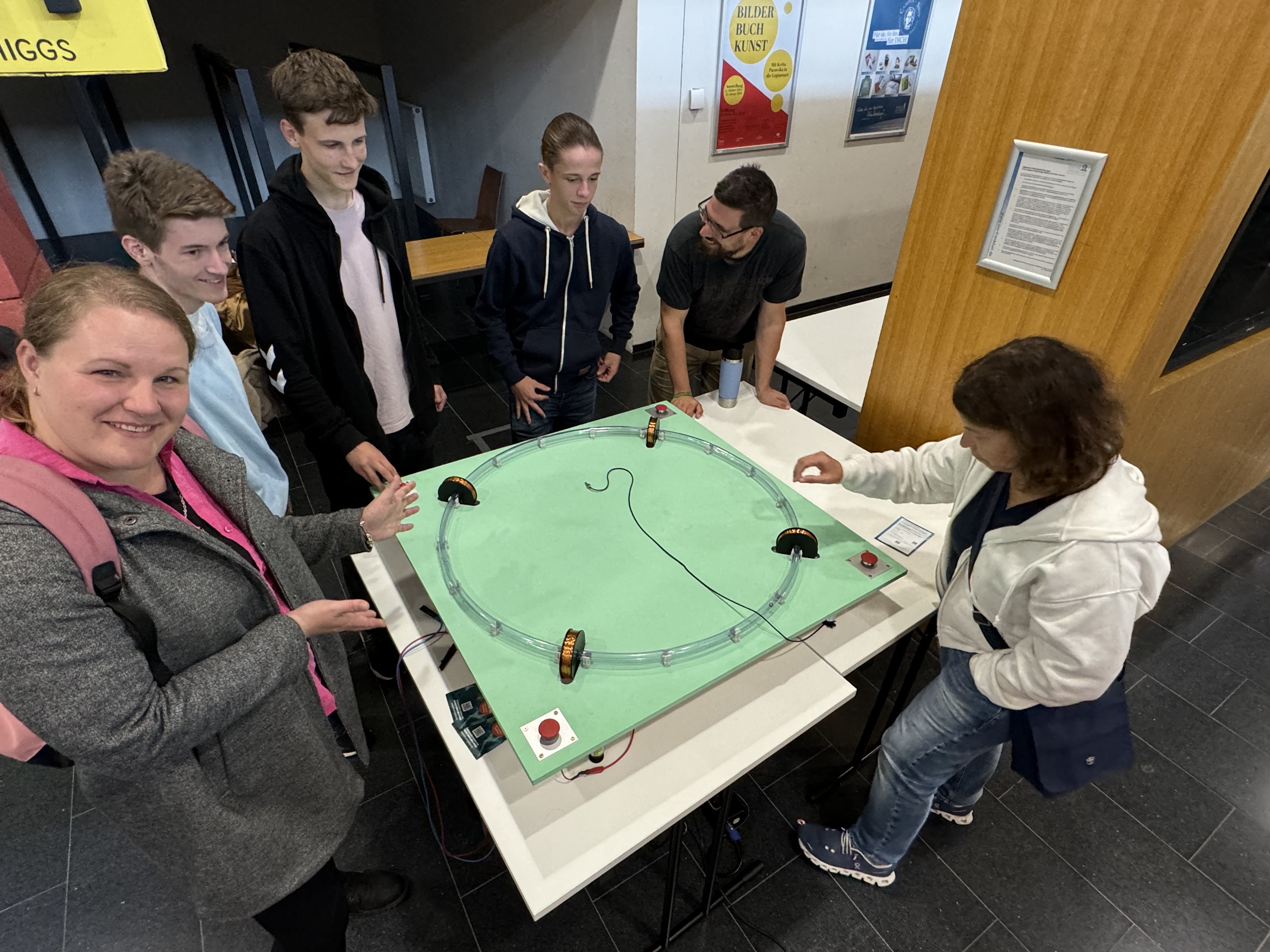Die Schülerinnen und Schüler der naturwissenschaftlichen Vorleistungskurse (Biologie, Chemie, Mathematik und Physik) der E-Phase begaben sich am 24.09.2024 auf eine Erkundungstour durch die Welt der Naturwissenschaften an der Goethe-Universität in Frankfurt. Den 65 Naturwissenschaftlerinnen und Naturwissenschaftlern bot sich ein abwechslungsreiches Programm mit Vorlesungen, Führungen und interaktiven Angeboten. Dabei wurde auch auf kontroverse Themen eingegangen. Insgesamt konnte aus 24 Vorlesungen und 8 Workshops bzw. Führungen ein abwechslungsreiches Programm zusammengestellt werden. Im direkten Kontakt zu den Studierenden im Foyer des Otto-Stern-Zentrums stellten interessierte Oberstufenschülerinnen und Oberstufenschüler Fragen zu den aktuellen Studiengängen. Neben den Berufsorientierungstagen in der Q-Phase soll dieser Tag eine erste Orientierung für eine spätere Studien- und Berufswahl im MINT-Bereich bieten.
