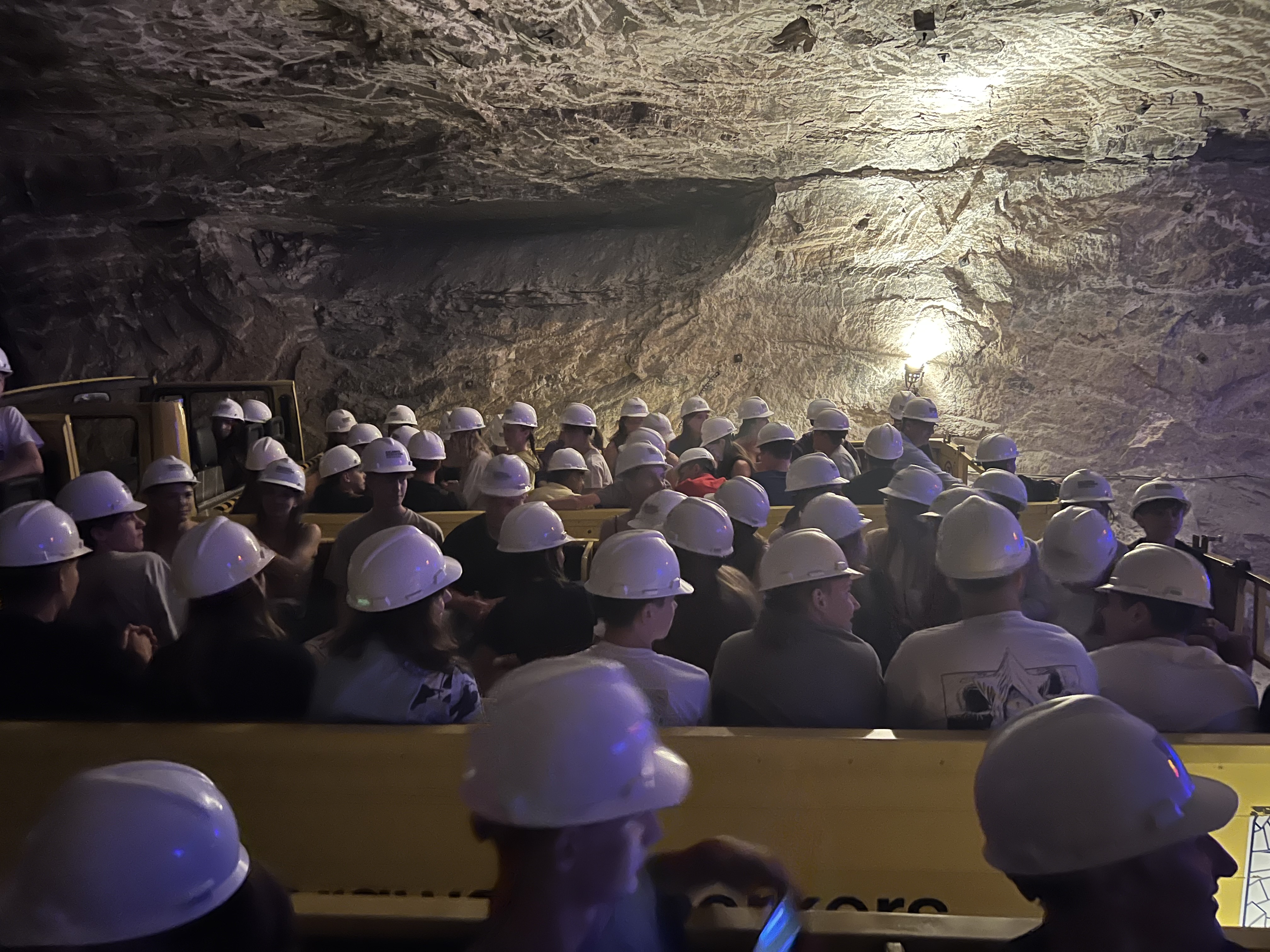 Das Erlebnisbergwerk Merkers tief unter der Rhön bot den 95 Schülerinnen und Schülern der aktuellen Jahrgangsstufe 9 einen eindrucksvollen Einblick in die Welt des Bergbaus. Über kurvige Strecken in 800 m Tiefe wurden mehrere Stationen auf einer Länge von 20 km in rasanter Fahrt besucht. Innerhalb von drei Stunden bot sich die Gelegenheit, alles über Salzlagerstätten sowie ihre Entstehung, die Geschichte des Bergbaus und die Rolle des Bergwerks am Ende des 2. Weltkriegs zu erfahren. Besonders beeindruckte der historische Goldraum, wo der legendäre Reichbank- Schatz gefunden wurde sowie die weltweit einmaligen Kristallgrotte, in der das Funkeln der riesigen Salzkristalle bestaunt werden konnte. Eine Lasershow im ehemaligen Großbunker des Bergwerkes, eine riesige Halle, die heute als Eventlocation genutzt wird, hinterließ abschließend eine Gänsehaut.